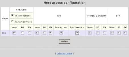 Ga daarna naar het tabblad Shares en klik op de share welke je wilt gebruiken voor NFS share. Voer daarna de onderstaande instellingen door.