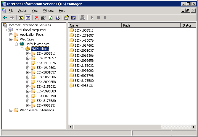 Tijdens mijn eerst introductie over esxupdate (esxupdate) liet ik zien hoe je eenvoudig de ESX3 server kunt updaten via een webserver. In deze post beschrijf ik hoe je een IIS 6.0 server kunt gebruiken als update repository en hoe je deze moet configureren.
