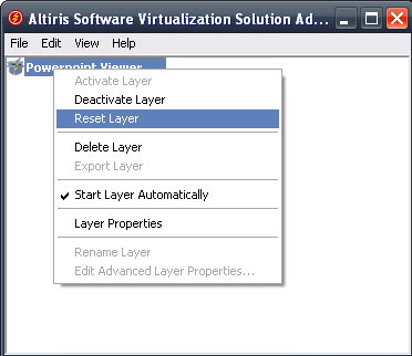 Het kan voorkomen dat de applicatie vast loopt. Dit kun je eenvoudig oplossen door de Layer te resetten.