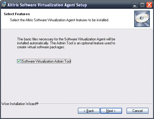 Klik next en vergeet bij het volgende scherm het vinkje aan te zetten voor Software Virtualization Admin Tool. Doe je dit niet dan kun je geen nieuwe Virtual Layers aanmaken.