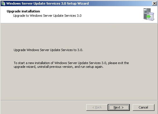 Nadat je de prerequirements hebt geïnstalleerd, kun je beginnen met de upgrade naar WSUS 3.0.