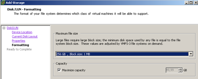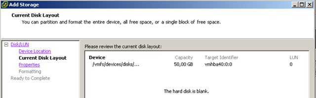Mocht je de oude LUN’s van het SAN behouden dan dien je de VMFS LUN’s bij te werken naar VMFS3 hoe dit in zijn werk gaat lees je onder het kopje upgraden. Mocht je gebruik maken van nieuwe LUN’s dan lees je onder het kopje Format / Add Storage hoe dit in zijn werk gaat.
