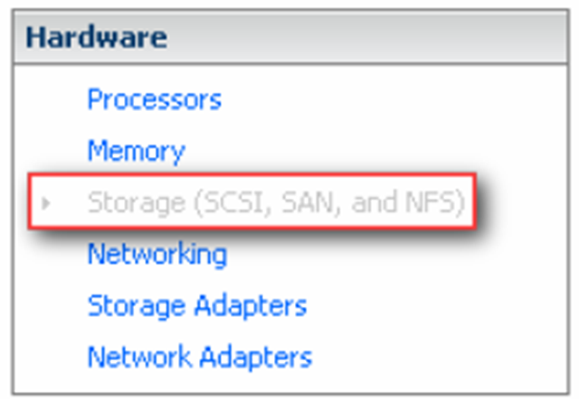 Ga nu naar het tabblad configuration en klik op Storage (SCSI, SAN, and NFS).