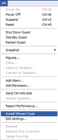 Open het console naar de desbetreffende VM. Klik op VM en daarna op de optie “Install VMware Tools“.
