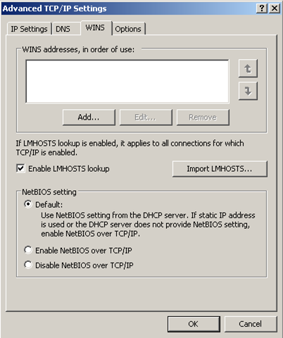 Standaard staat de WINS instelling zoals het onderstaande plaatje
