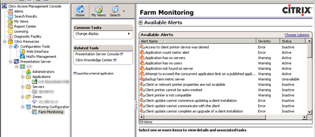 Nadat je alles hebt geconfigureerd en je database kan succesvol benaderd worden, dan kun je via het knopje Farm Monitoring in het Citrix Access Management console de logging inzien.