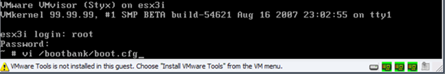 In deze post lees je hoe je de ESX3i boot options aan kunt passen. Dit is vooral handig als je ESX3i binnen een VM start. Je hoeft nu namelijk niet steeds handmatig met de shell optie nousbboot op te starten.