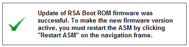 Nadat deze klaar is komt het volgende scherm op het beeld. Restart de ASM en de nieuwe firmware is actief.