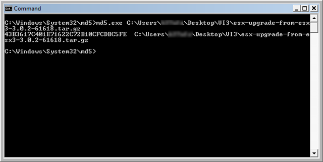 - Voer het volgende commando uit: C:\Windows\System32\MD5\MD5.exe bestandsnaam.exe {enter}.
