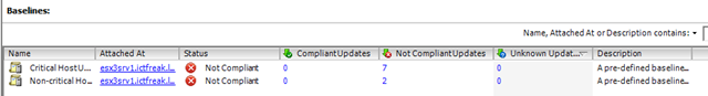 Selecteer de host die je wilt gaan updaten. In dit voorbeeld gaat het om esx3srv1.ictfreak.local. Daarna klik je op Attach Baseline….