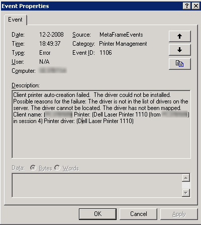 De volgende melding kun je tegenkomen in je application log op een Citrix Server.