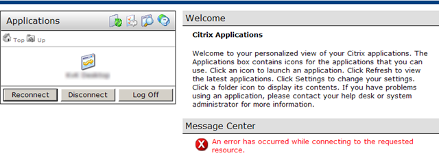 De onderstaande foutmelding kreeg ik bij het starten van een published desktop binnen de webinterface.