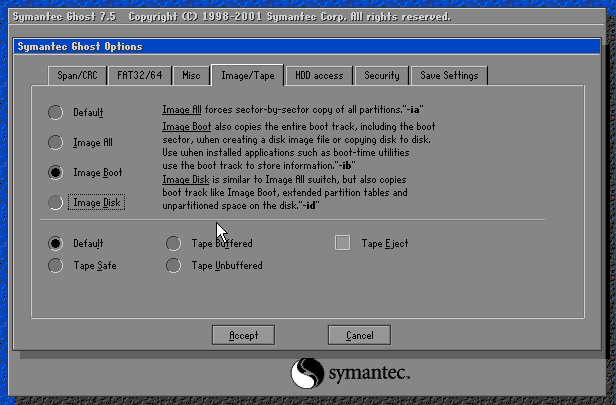 Dit kun je oplossen door de optie Image Boot (-ib) te gebruiken. Nadat ik weer een