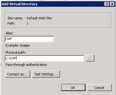 In mijn geval heb ik deze OVF genoemd en geeft het pad op naar de directory.