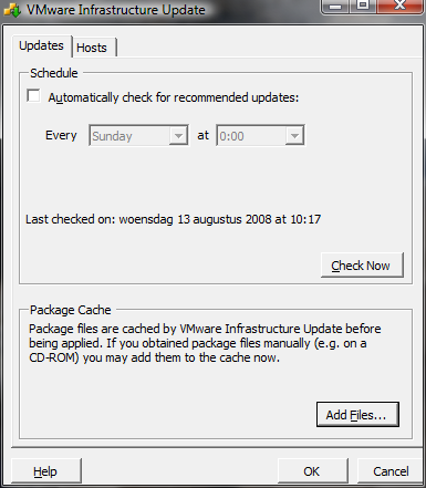 Start de VMware Infrastructure Update applicatie en klik op Check Now.