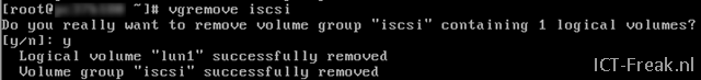 When you go back to the Openfiler screen and pressed F5 for refreshing the browser. You’ll notice that the volume group is gone.