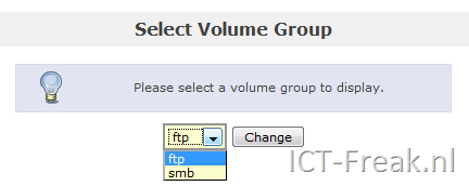 So back to my problem with Openfiler. In the Select Volume Group you’ll find and dropdown menu with all the volume groups. Remember the group you want to delete.