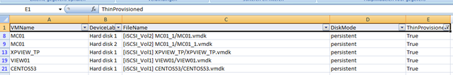 Now we have a list with all the VM’s with Thin Provisioned disks: