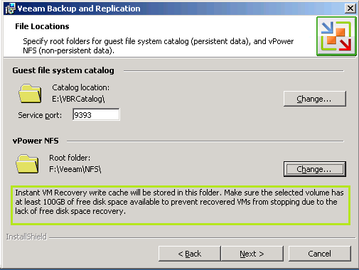 Set the Guest file system catalog and the vPower NFS folder. I used two separated partitions for these folders.