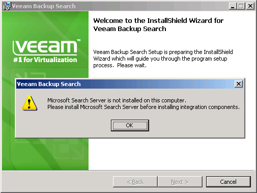Another new feature of Backup & Replication v5 is Backup Search.  When you start the setup without reading the manual, you get the following warning: