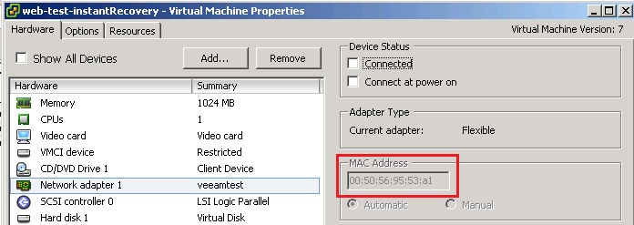 After testing the Instant Recovery of a Linux web server. See my previous post about this Recovery process. The Linux web server has no network connection. I quick look at ifconfig only showed the loopback adapter. So I tried ifup eth0 and run into to following error: