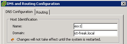 Warning! If you are using vSphere 4.1 and the vSphere hosts are joined to a Windows domain. You are not able to change the DNS settings!