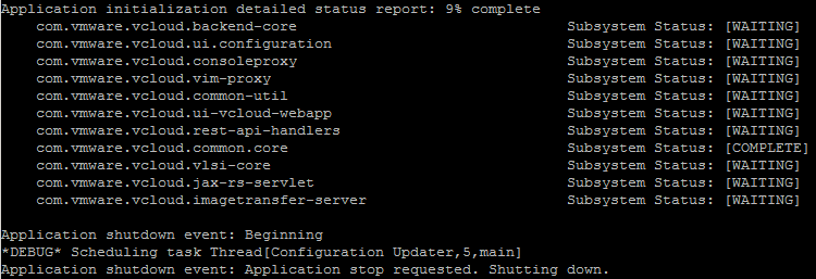 After installing vCloud Director in my lab, I couldn’t start the cell. So I looked in the log file: /opt/vmware/cloud-director/logs/cell.log and saw the following subsystem status report: