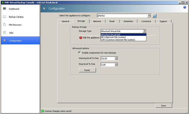 In both cases, you have to restart the appliance to apply the new settings. When the restart of the appliance is finished you’re ready to start creating backup jobs.