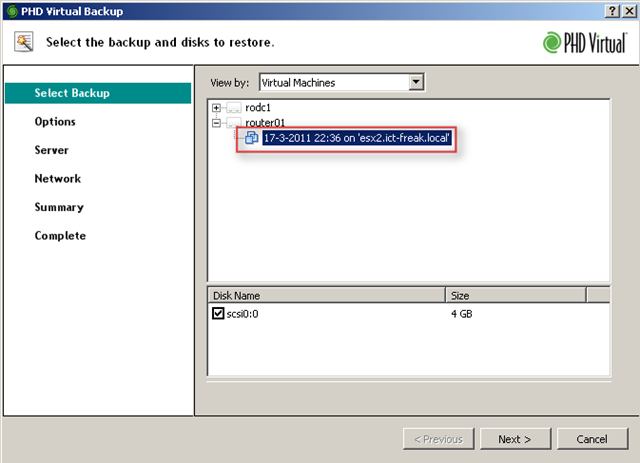 This was the first time a have worked with PHD Virtual Backup and I must say it works very easy. I love the Virtual Appliance approach. You don’t need a license for the Guest OS and you can deploy a Virtual Appliance in no time. Overall I think it’s a great product.But with some room for improvements left. The file level restore is a bit different than the way competitors perform their file level restores.