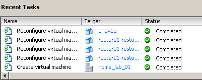 When you look at the vSphere client, you notice a lot of activity and you’ll see that the VM is created with the correct name.