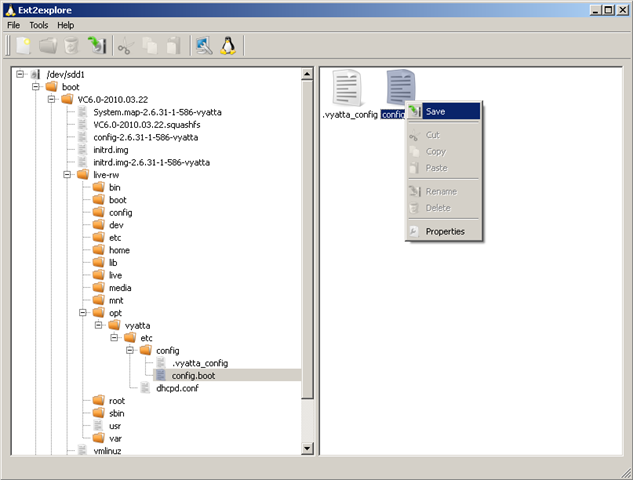 To restore files from a Linux VM, you have to install ext2explore first. You can download ext2explore here. After starting esx2explore, you’re able to browse the disk and Save a file to your Windows PC:![]()