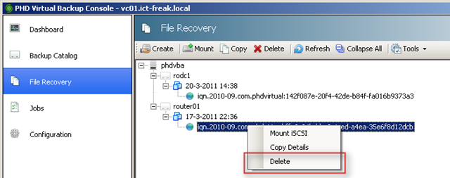Don’t forget to Delete the iSCSI targets from the File Recovery window.