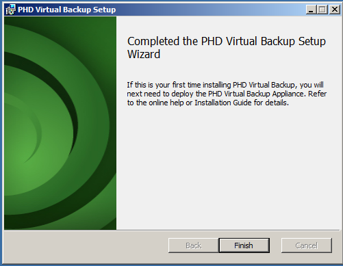 Exit the vSphere client on the PC or Server you want to install the PHD Virtual Backup Console and Plug-in. Now install the phdvb.msi.