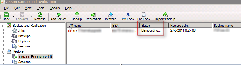 Today I was investigating an issue with Veeam Backup & Replication Instant Recovery. One of the sessions stopped with the status Dismounting…