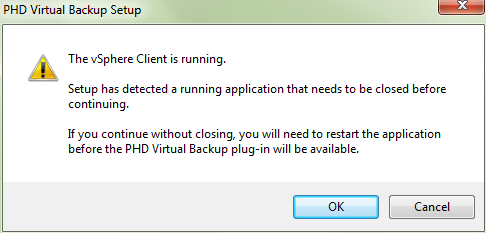We start with the Installation of the PHD Virtual Backup Console (vSphere plugin). Don’t forget to close the vSphere client: