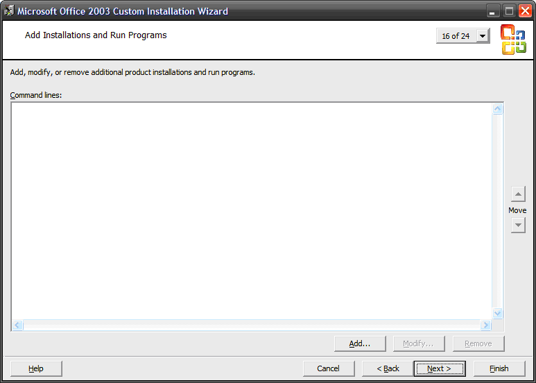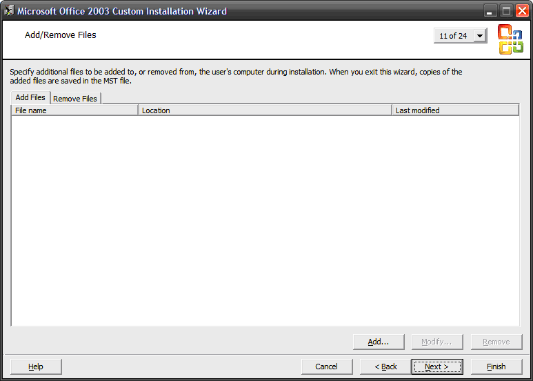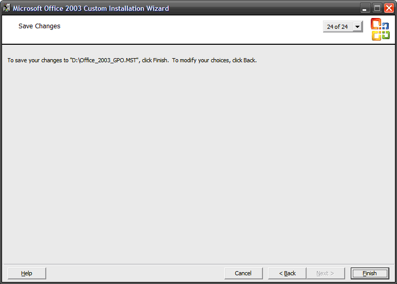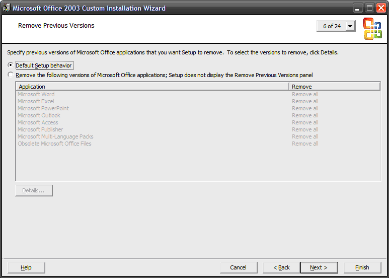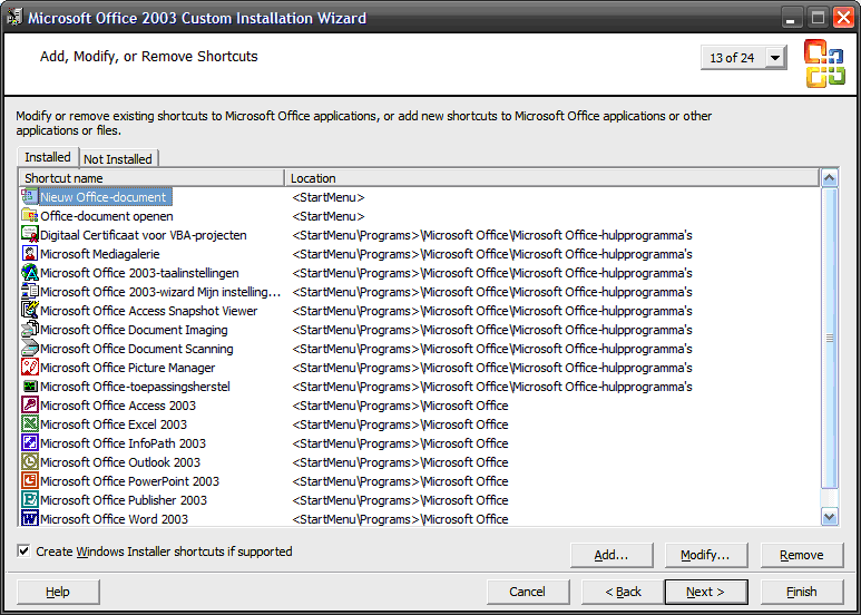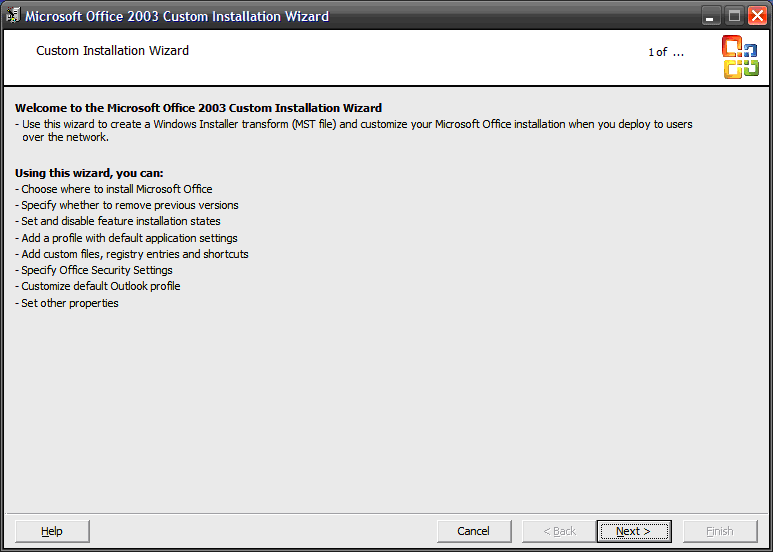 Start de Microsoft Office 2003 Custom Installation Wizard
