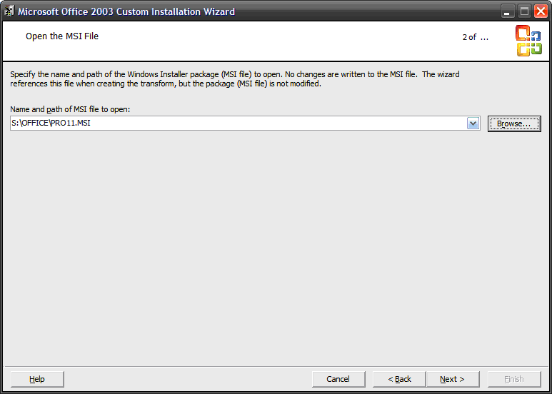 Klik next en blader naar de Office installatie CD. Open daarna de PRO11.MSI