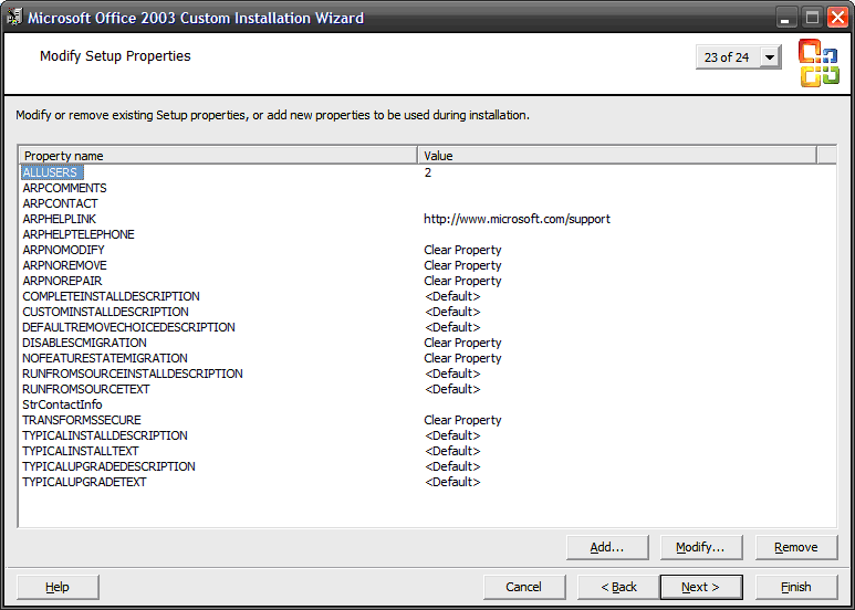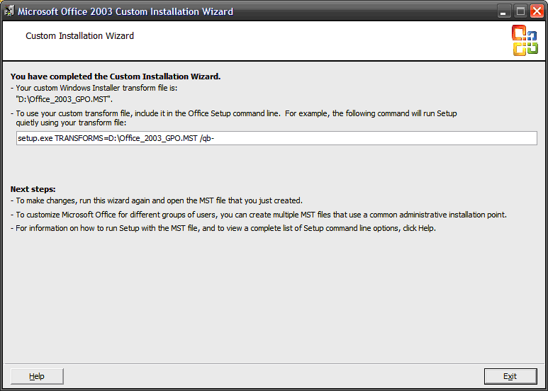 Deze tip ga ik niet gebruiken omdat ik Office 2003 via een GPO wil uitrollen.