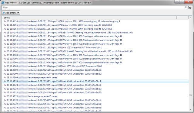 # DRS Rules One-Liner Get-DrsRule -Cluster (Get-Cluster -Name Cluster_01) ` | Sort Name | Select Name, @{N="Enabled";E={$_.Enabled}}, ` @{N="KeepTogether";E={$_.KeepTogether}},` @{N="Virtual Machines";E={$_.VMIds | % { Get-VM -Id $_ | ` % {$_.Name} }}}