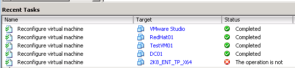 When you start the script, you will notice that vCenter is very busy reconfiguring the virtual machines:
