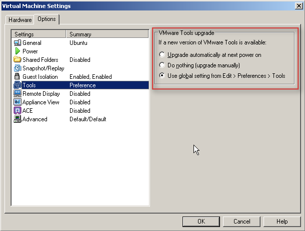 Het upgraden van de VMware Tools heeft ook weer wat meer opties gekregen.